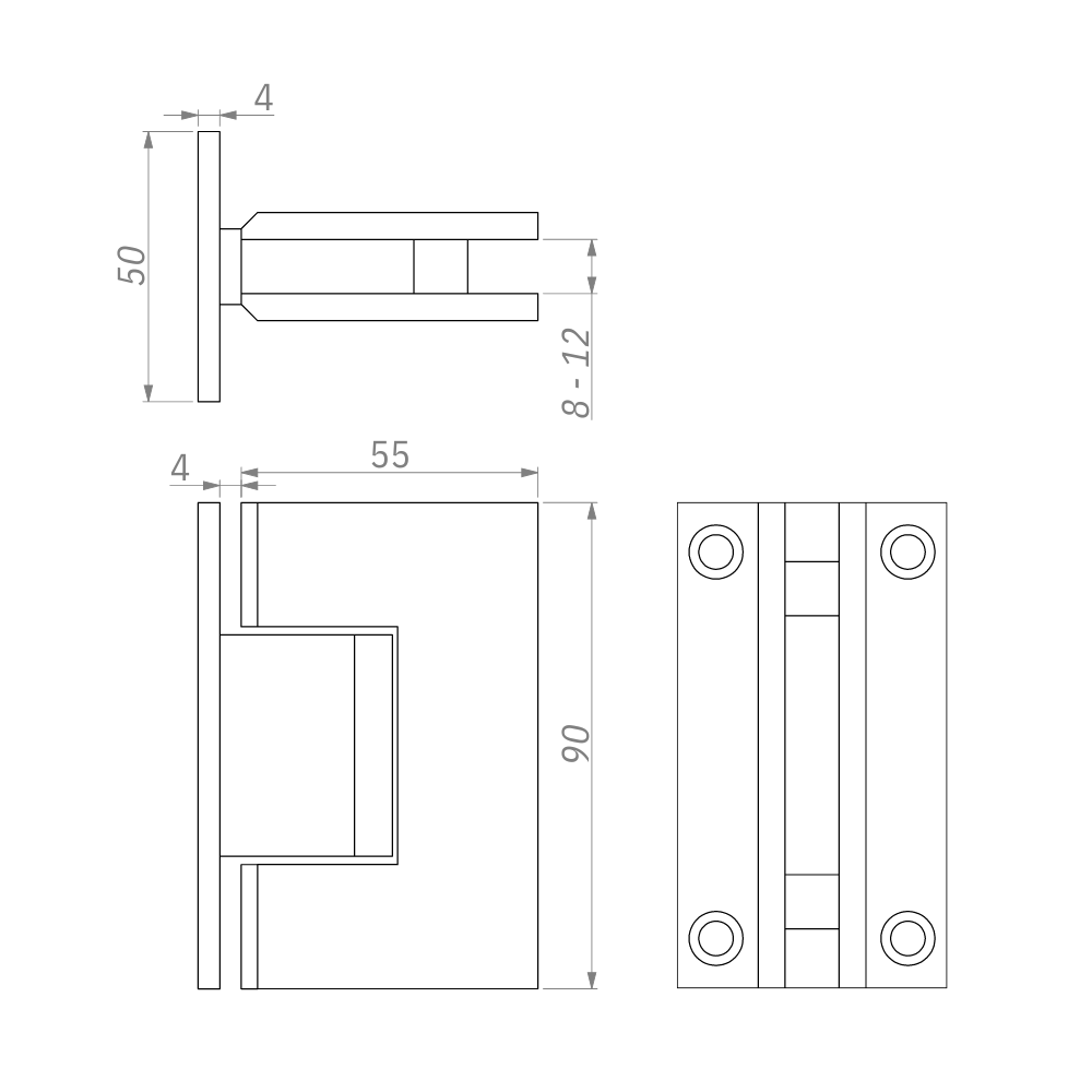 Para vidros de 8 a 12mm de espessura