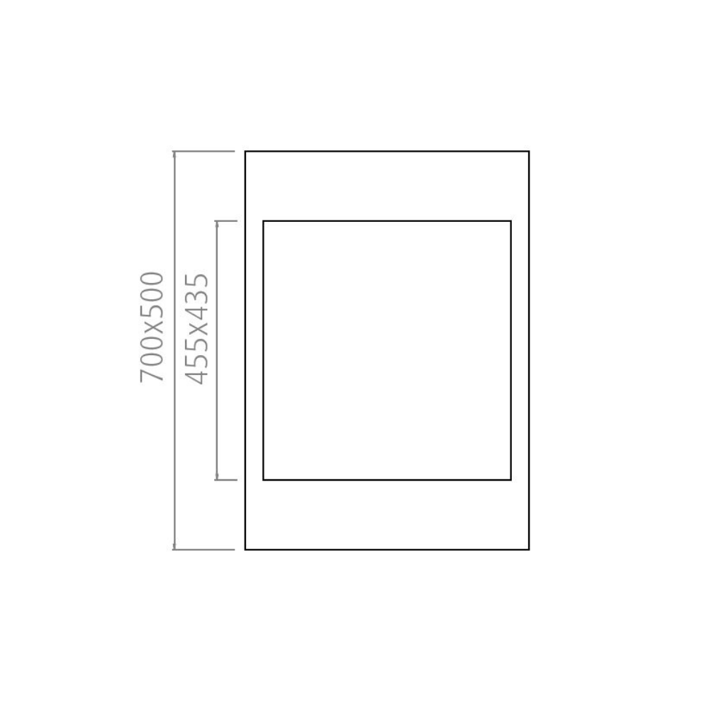 Dimensão total- 700x500mm Dimensão espelho- 455x435mm