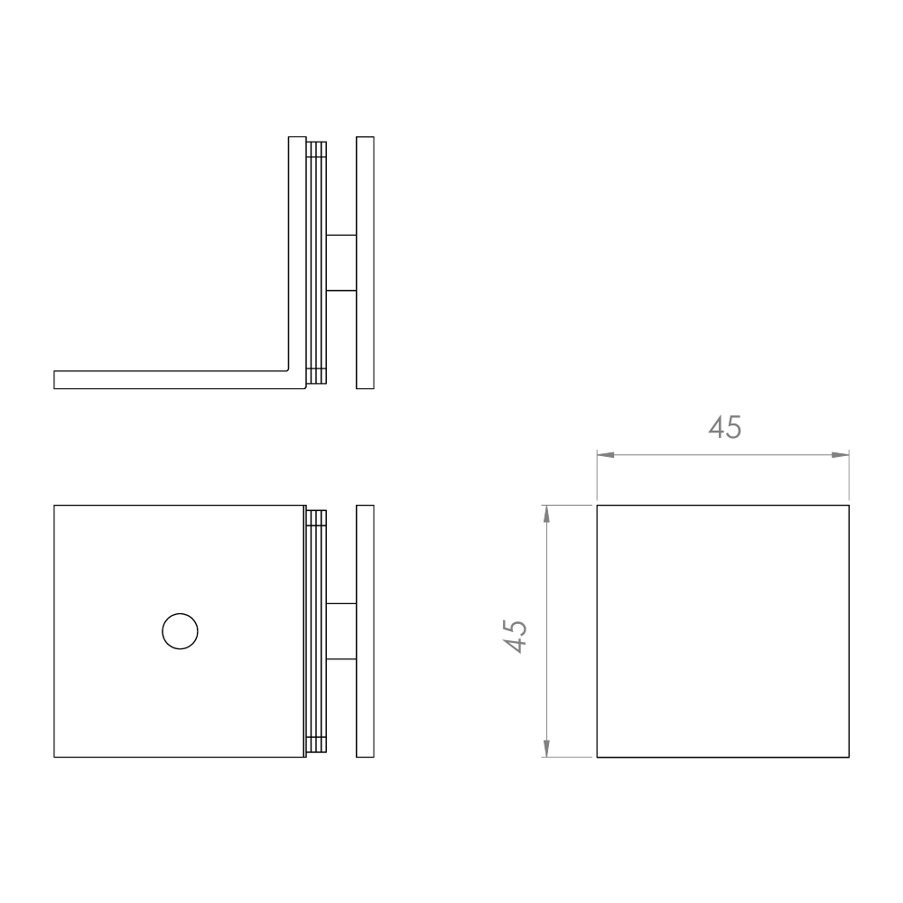 Suporte parede-vidro com aba lateral